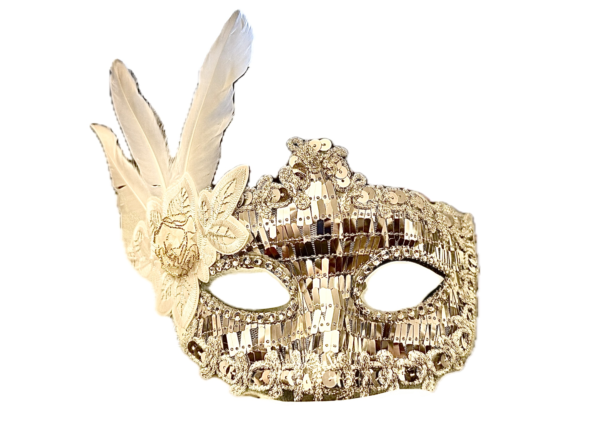 Antifaz deluxe encaje y pluma blanca Disfraz Disfraces Antifaces