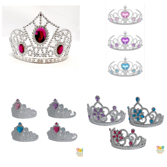 Corona plateada piedras (colores y diseños variados) (al azar)