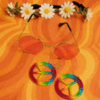 Disfraz Hippie (bandana, collar peace and love, lentes) imagen referencial