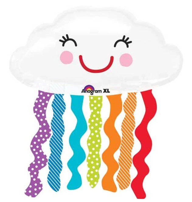 Globo nube con flecos multicolor 25″ aprox (con helio) Duración aproximada 8 horas