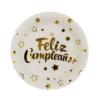 Platos feliz cumpleaños 17cm (pack 12) white and gold party