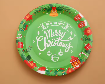 Platos Merry Christmas (diseños variados verde) Xmas – Navidad (pack 6)