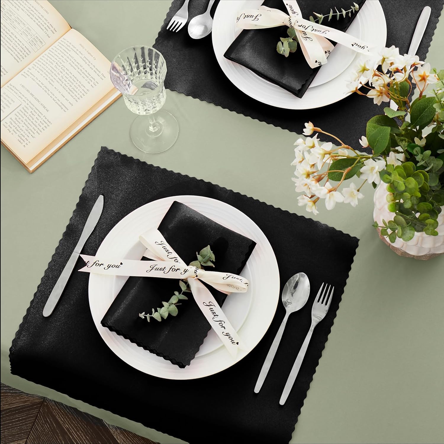 Servilletas de saten (negro) 44cm x 44cm (pack 10)