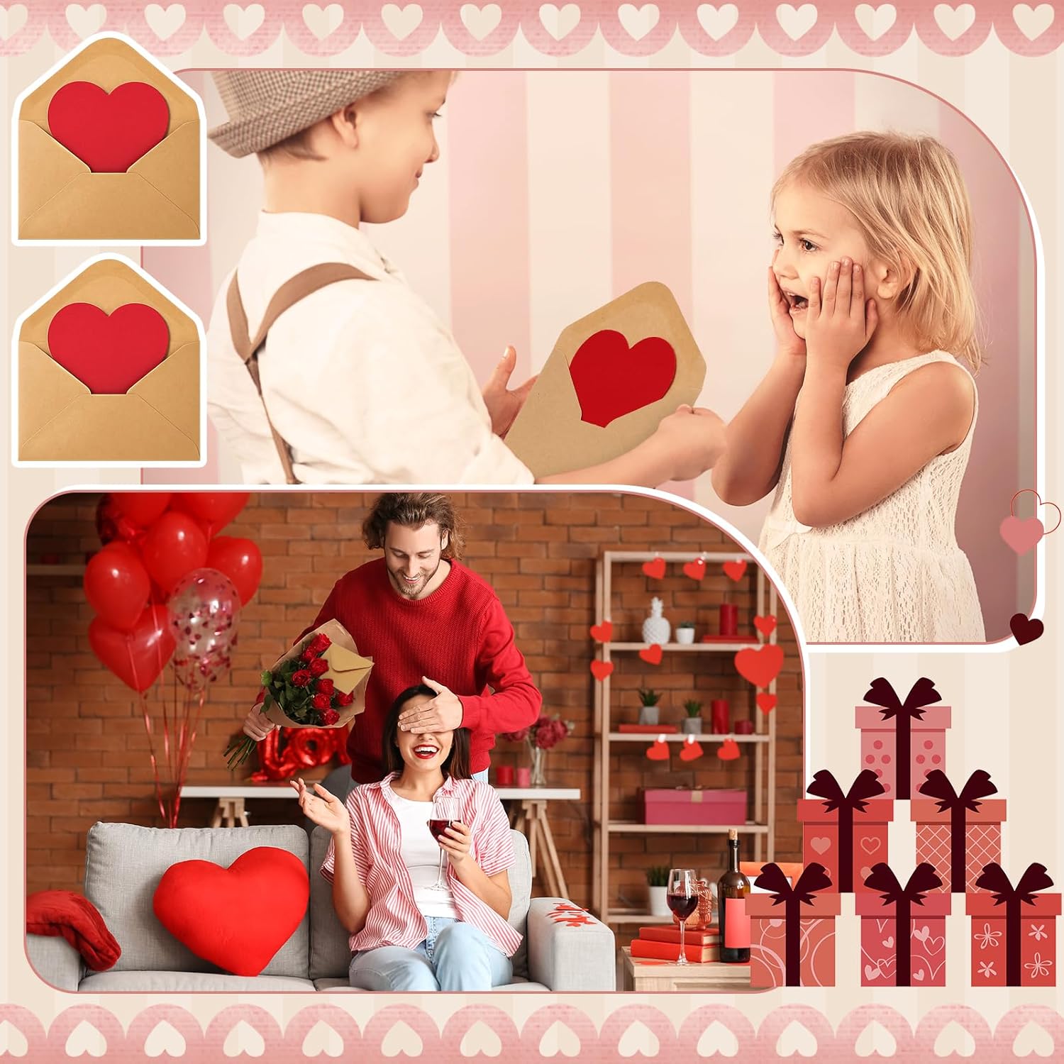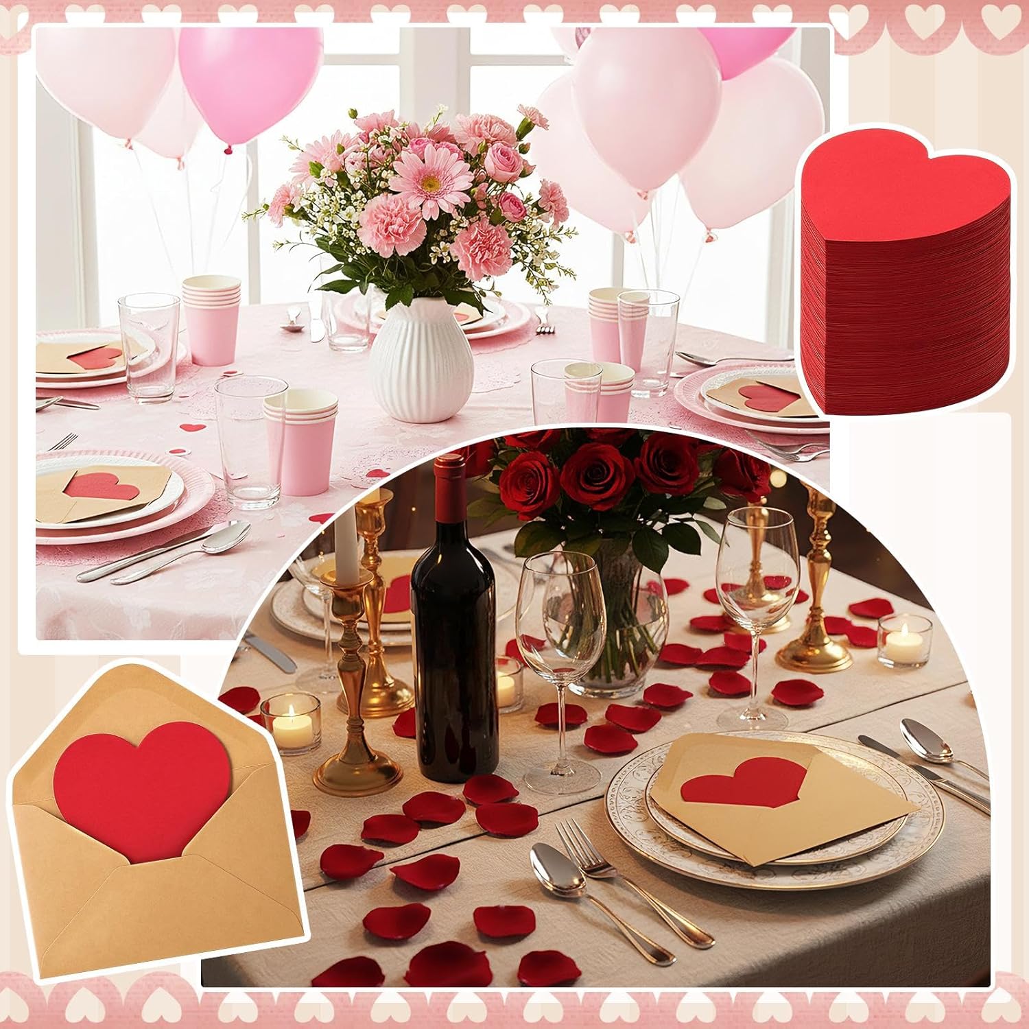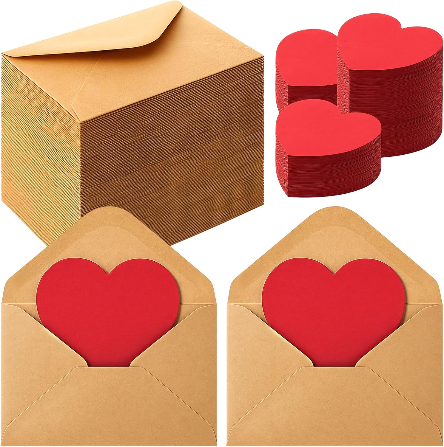 Tarjeta San Valentin (sobre kraft / tarjeta de corazon rojo) amor (10.5cm x 7cm)