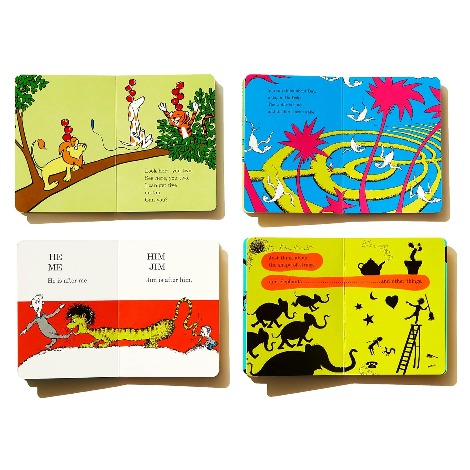 Tucked inside this cute little blue box topped with a plastic handle and secured by a tuck closure are board book editions of the classic Dr. Seuss titles Hop on Pop; Oh, the Thinks You Can Think!; Ten Apples Up On Top!; and The Shape of Me and Other Stuff. Ideal for the holidays, new mothers, and happy occasions of all kinds, this is a literacy-nurturing gift that babies can literally sink their teeth into!