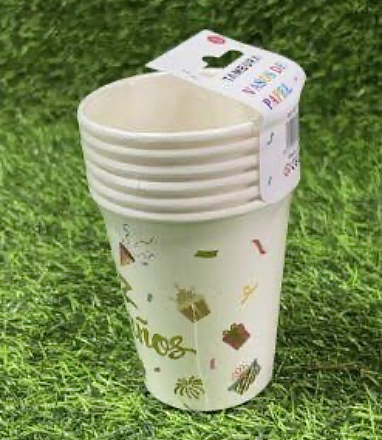 Vasos Feliz cumpleaños (pack 6) white and gold